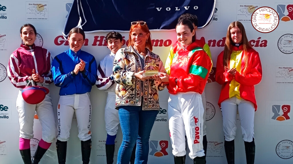 Carmen Moreno, consumer experience de Codimotor Volvo Sevilla, entrega a la amazona Sara Horcajada su trofeo de ganadora de la primera etapa de la Copa Volvo | Juanjo Mariscal (GHA)